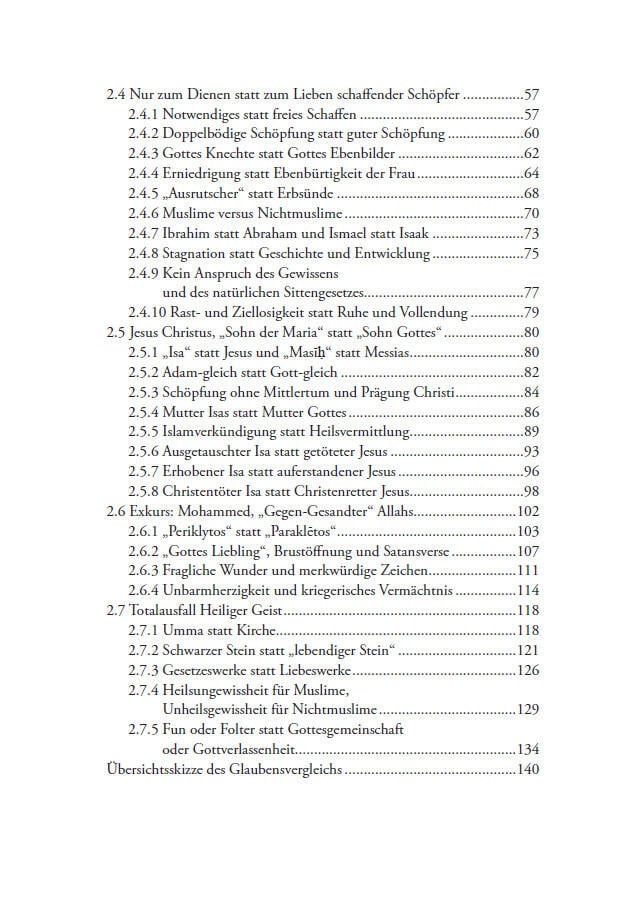 Stefan Ullrich legt mit seiner Arbeit eine fundierte historische sowie dogmatische Darstellung des Verhältnisses der beiden Religionen Christentum und Islam zueinander vor. Dieses Verhältnis wird grundsätzlich von einem Feindbild Christentum im Islam bestimmt und lässt sich nicht durch einzelne positive Berührungspunkte entschärfen. Jenseits aller Versuche, im Sinne eines „liberalen“ Islams hier Brücken zu bauen, stellt der Verfasser klar, dass diese utopisch sind.
