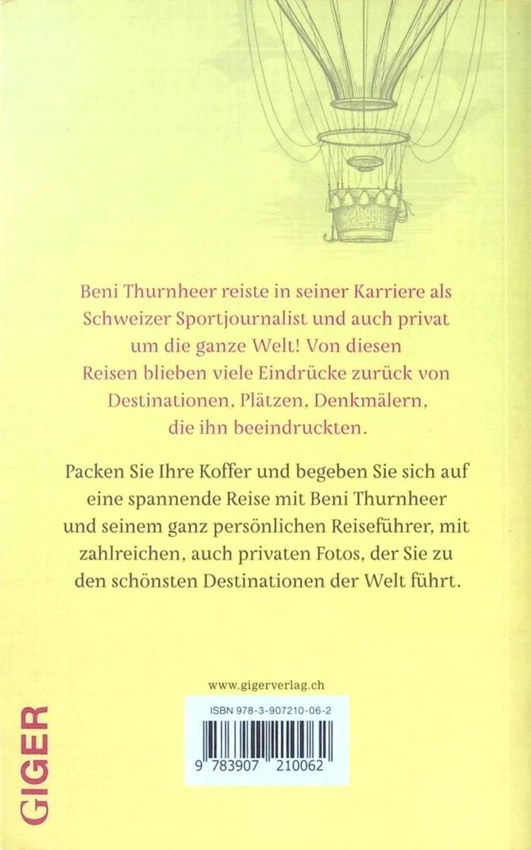 Beni Thurnheer reiste in seiner Karriere als Sportjournalist und auch privat zweimal um die ganze Welt! Von diesen Reisen blieben viele Eindrücke zurück von Destinationen, Plätzen, Denkmälern, die ihn beeindruckten und die er analysierte, warum gerade diese Plätze bei den Reisenden einen bleibenden Eindruck hinterlassen. Packen Sie Ihre Koffer und begeben Sie sich auf eine spannende Reise mit Beni Thurnheer und seinem persönlichen Reiseführer, der Sie zu den schönsten Destinationen der Welt führt!